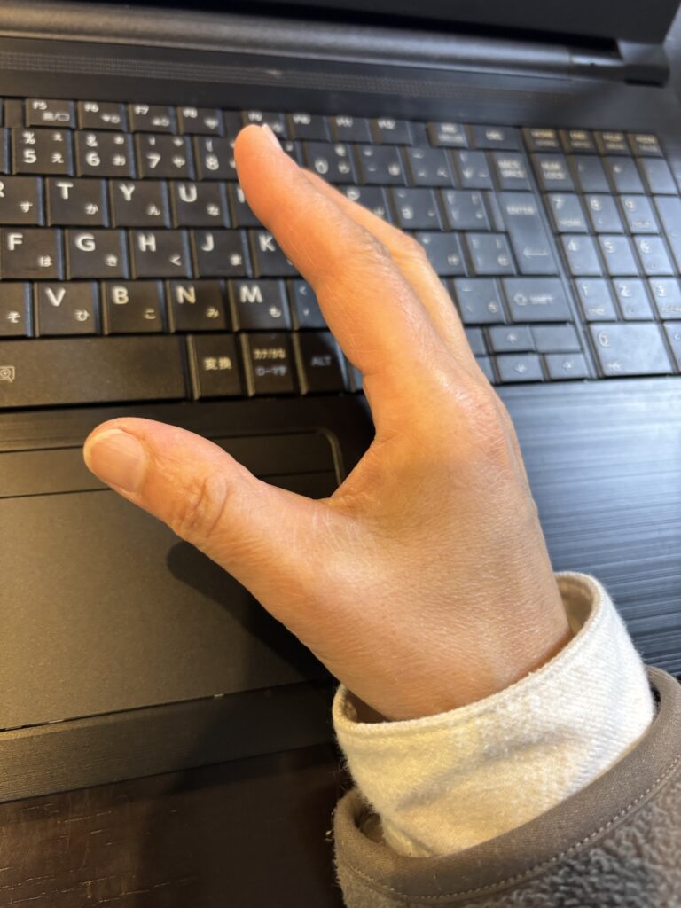 2024年夏頃から秋冬にかけて、ばね指(親指)は少し腫れているような感じ