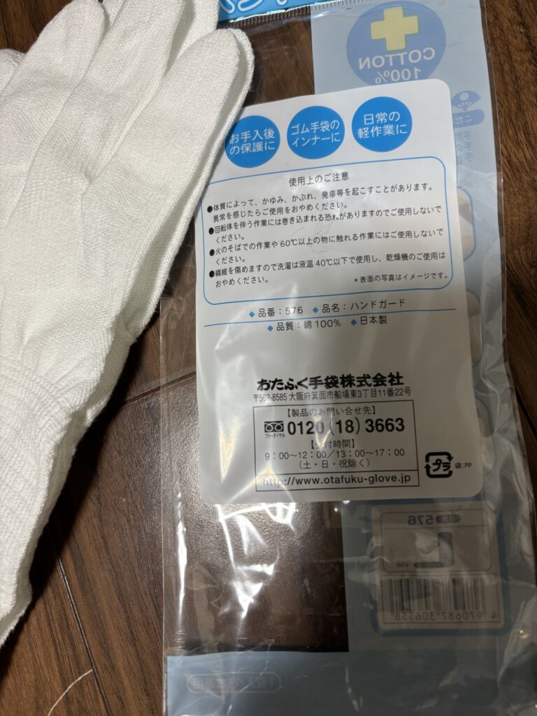今までは100円ショップの綿手袋を使っていたが、今回は新しいものを購入